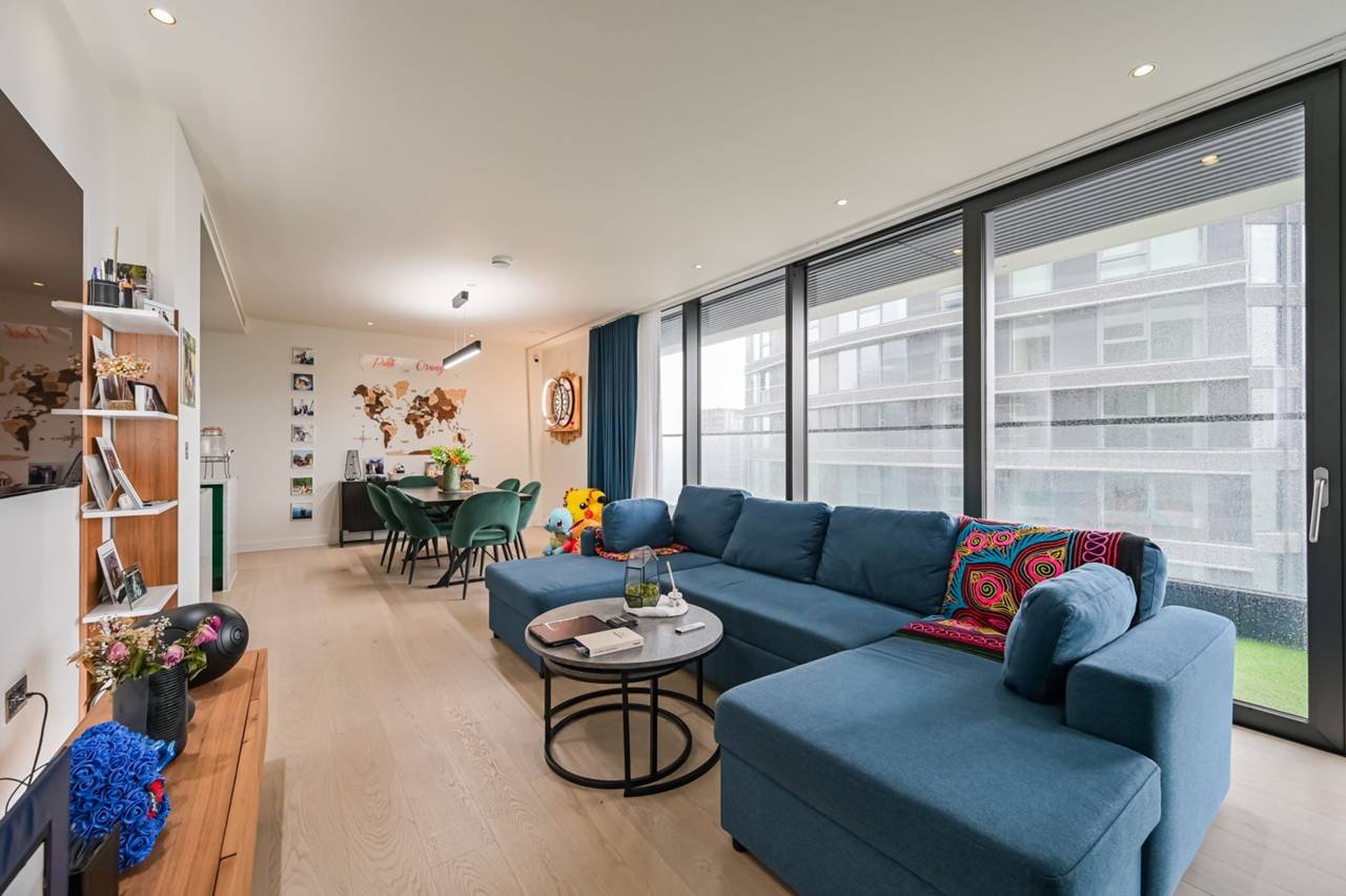 Luxuries 2 bedroom flat offering sunlit and ample interiors, elegant open plan reception room with dining, large kitchen island, main bathroom and private terrace with views over London.